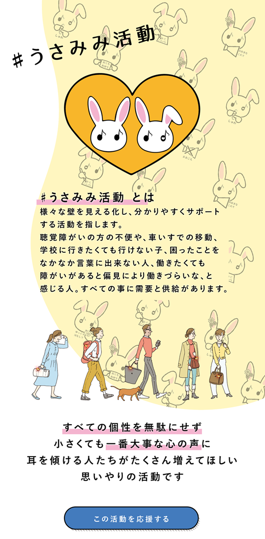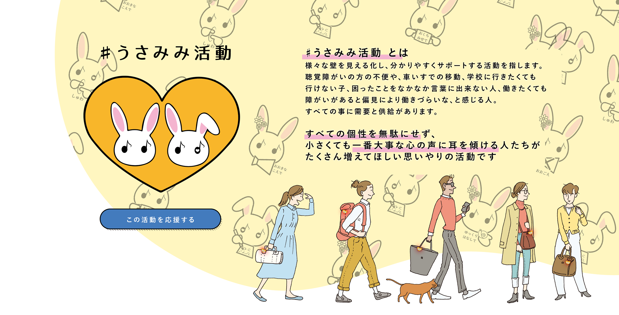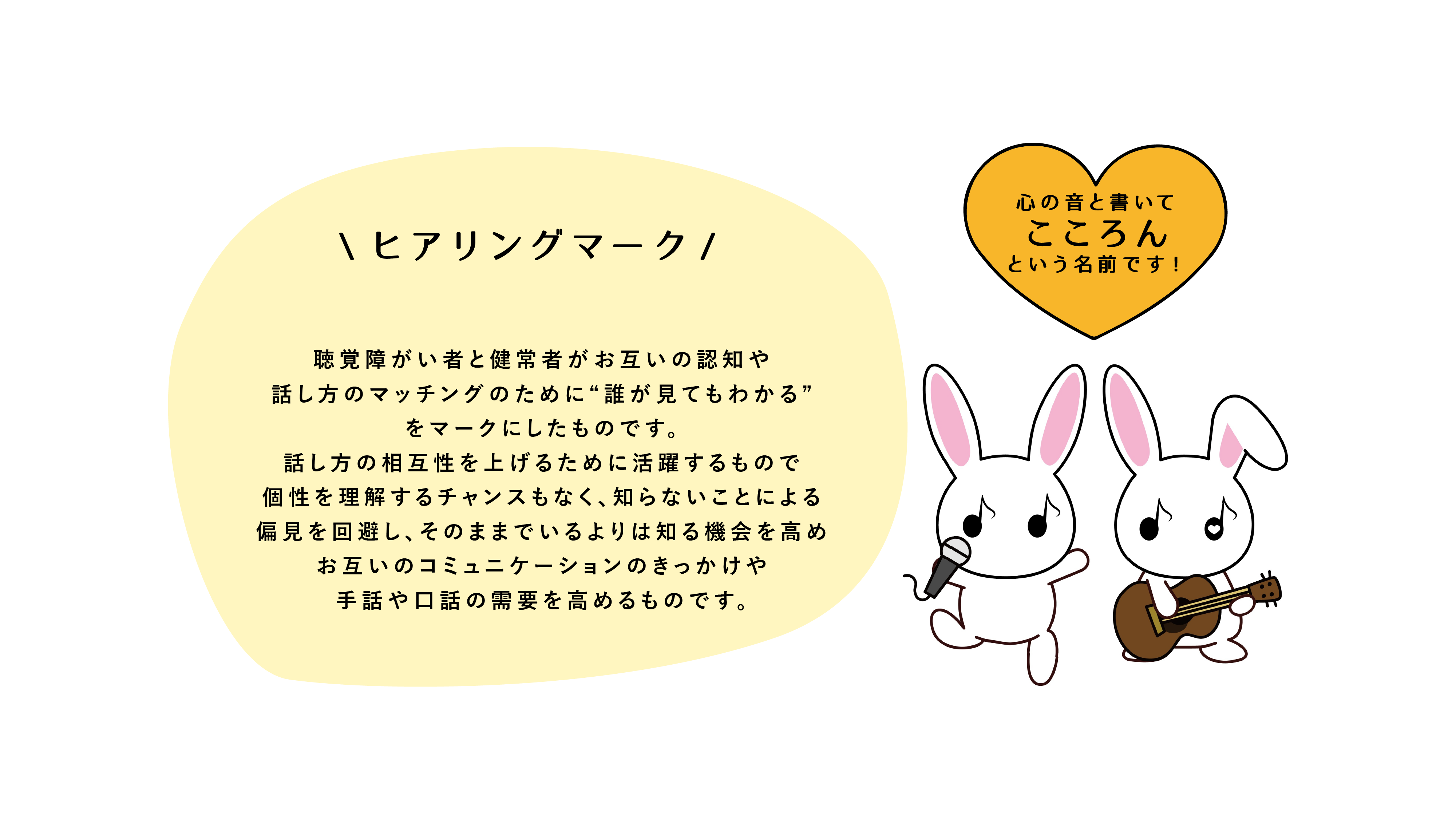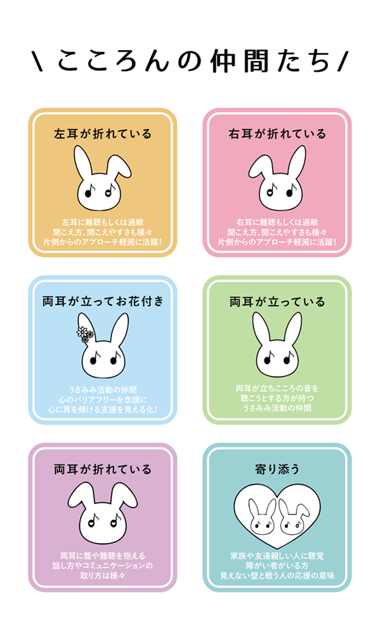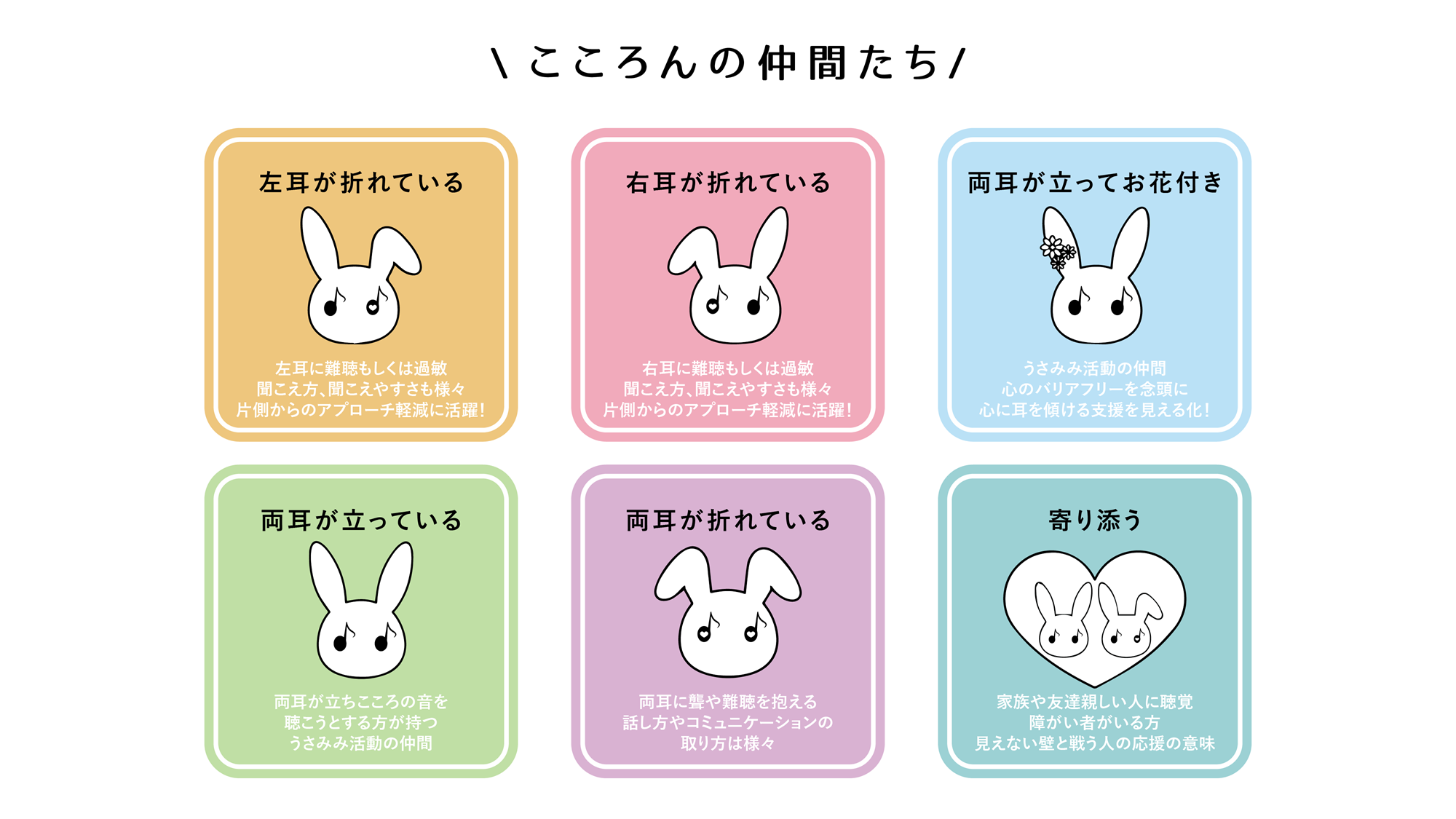 聴覚支援をするためには、聴く気持ち、受け取る気持ちが大事だと思っているので、外国方や小さなお子様やご高齢の方でも分かりやすくうさぎを選びました。